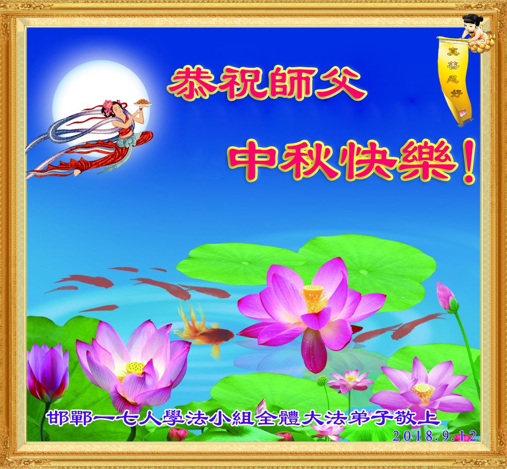 河北邯郸一七人学法小组全体大法弟子恭祝师父中秋快乐! 河北邯郸一大法弟子恭祝师父中秋快乐!