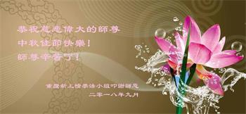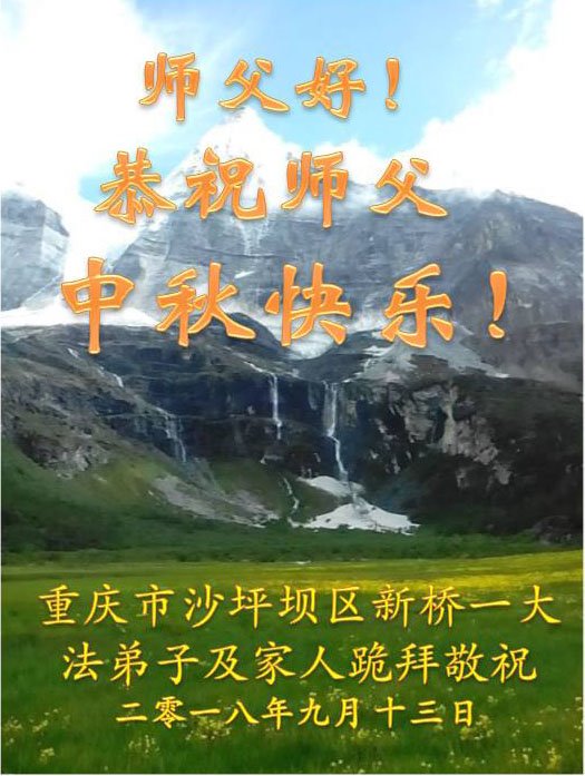 【明慧网二零一八年九月二十二日】 一重庆渝中区肖家湾学法小组大法弟子恭祝师尊中秋快乐!
