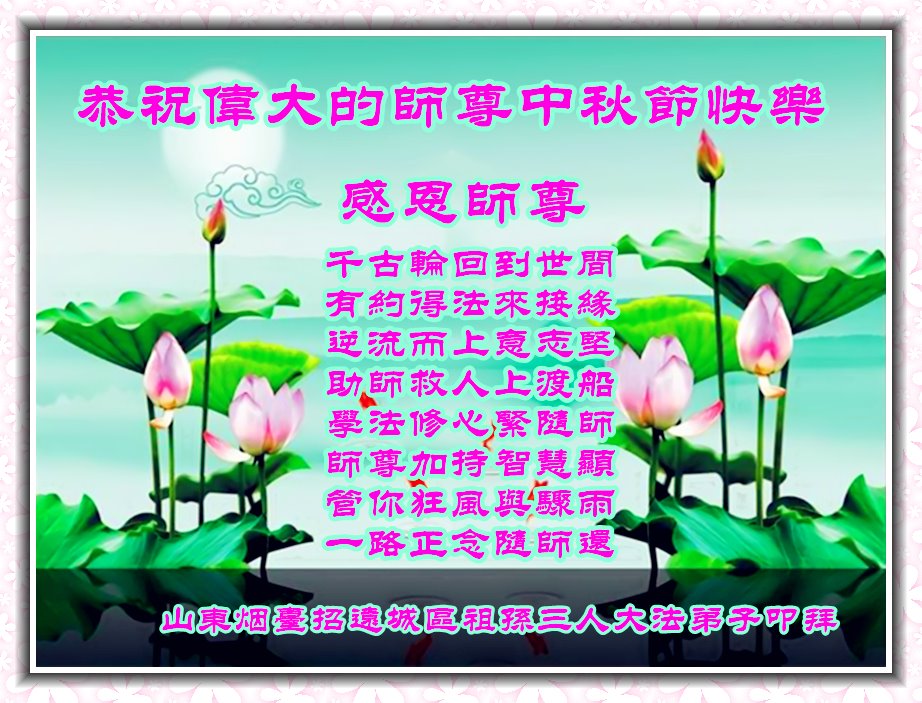 感恩伟大的师尊的慈悲救度! 山东烟台招远张星镇全体大法弟子恭祝慈悲伟大的师尊中秋节快乐!