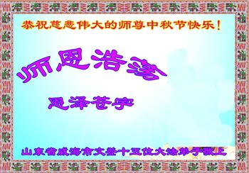 山东省威海市荣成市一学法小组大法弟子恭祝慈悲伟大的师尊中秋节快乐!
