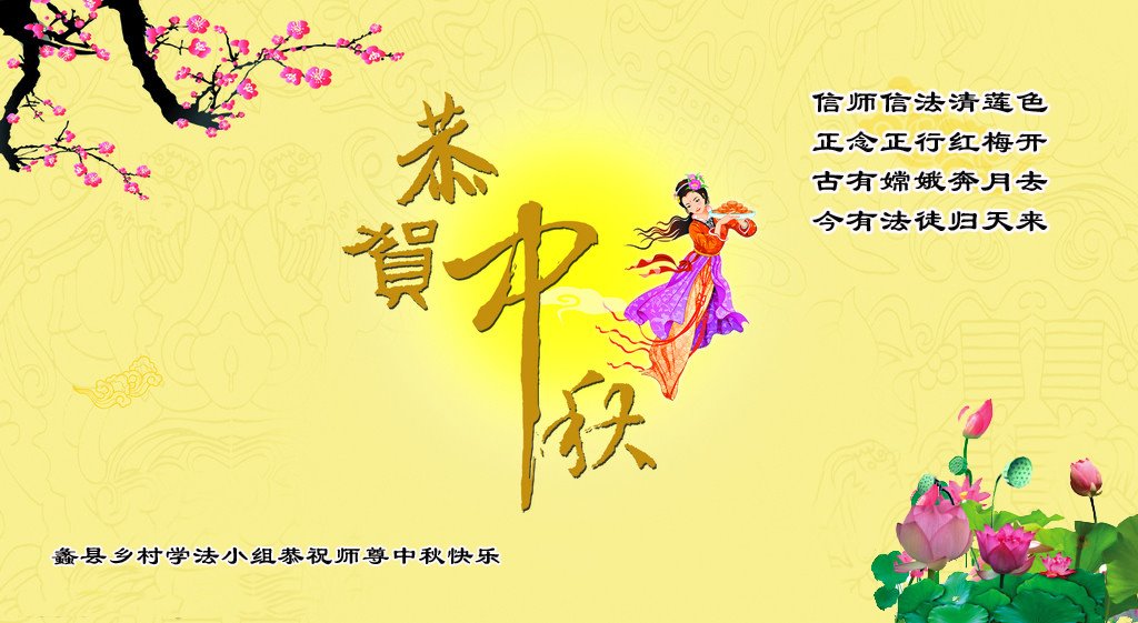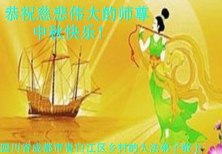 法轮大法好, 進入世间道。 众生渐已醒, 但愿师尊笑。 四川成都农村大法弟子恭祝师父中秋快乐!