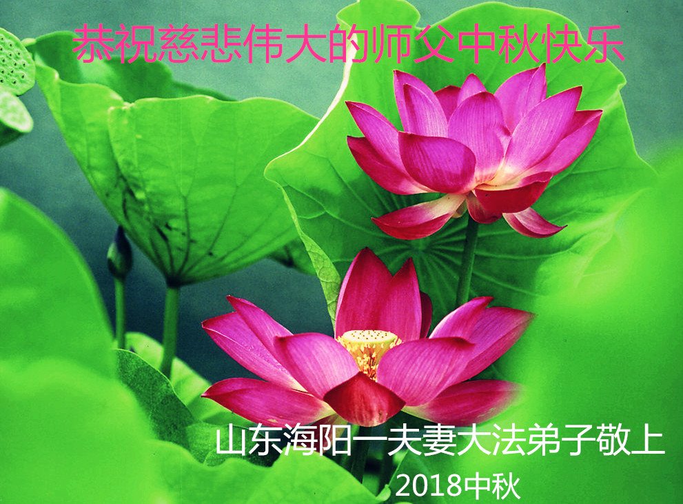 师父好!中秋节已来临,师尊对弟子的恩德永远也写不尽、说不完,敬祝师父中秋节快乐!山东海阳一乡村夫妻大法弟子敬拜师尊! 山东省烟台市海阳市一乡村夫妻大法弟子恭祝慈悲伟大的师尊中秋快乐!