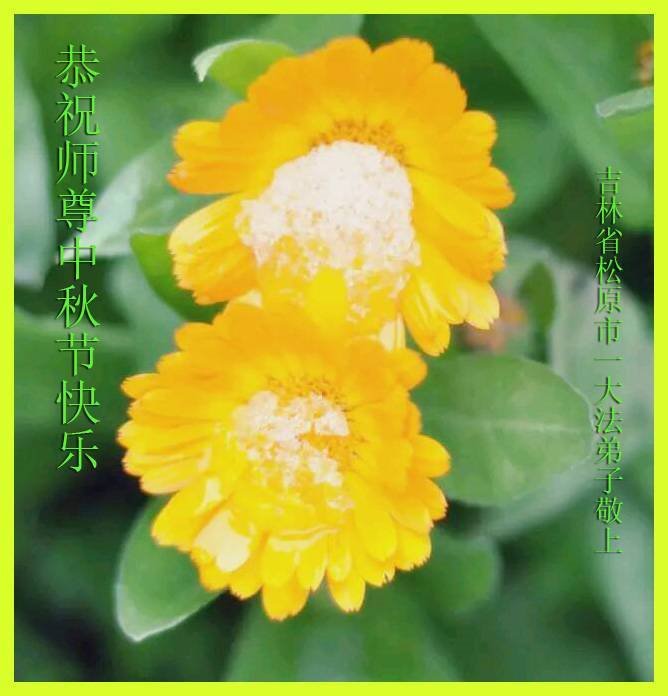 师尊您好!您辛苦了!弟子们想念您!弟子只有在做好三件事的同时走正走好师尊给安排好的路,紧跟师尊的正法進程,请师尊放心。松原市大法弟子叩拜师尊! 吉林省松原市乾安县大法弟子姐妹俩恭祝师尊中秋节快乐!