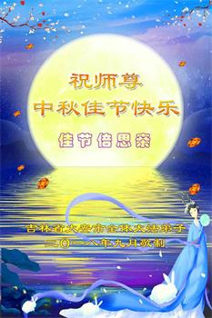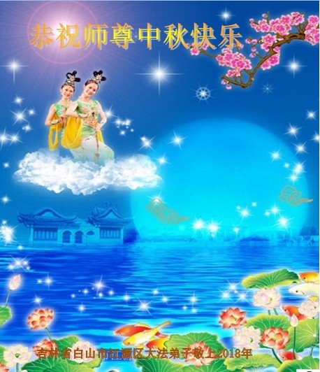 师尊您好!您为我们大法弟子承受着难以想象的痛苦,您用最伟大慈悲的心看护着我们、保护着我们,把我们从地狱中捞起、洗净,领着我们走向返本归真的路。请师父放心,我们就听师父的话,走好师父安排的路,修好自己,做好三件事,助师正法不动摇,返本归真回家园。盼望师父早日回归家乡。叩拜师父! 吉林省白城市大法弟子恭祝师尊中秋节快乐!