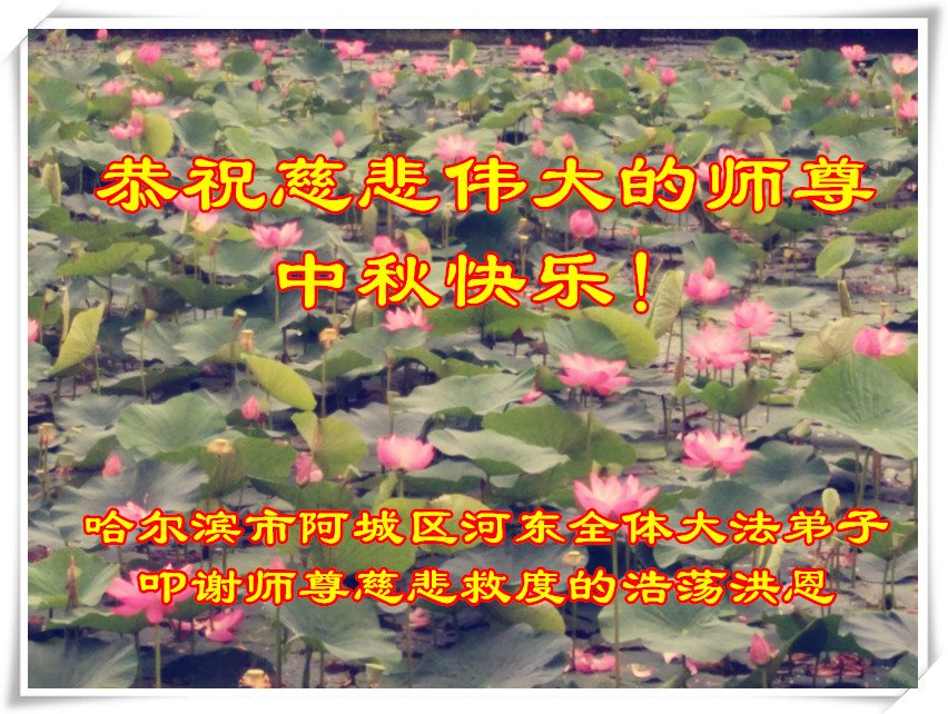 师父您辛苦了!哈尔滨市阿城区河东全体大法弟子叩谢师尊慈悲救度的浩荡洪恩! 黑龙江省哈尔滨大法弟子恭祝师父中秋快乐!