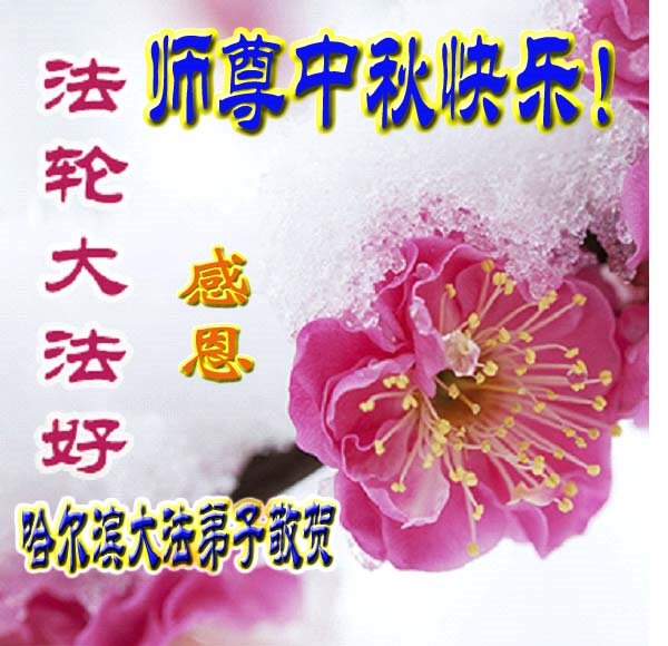 黑龙江省哈尔滨学法小组大法弟子叩拜师父!恭祝师父中秋好!