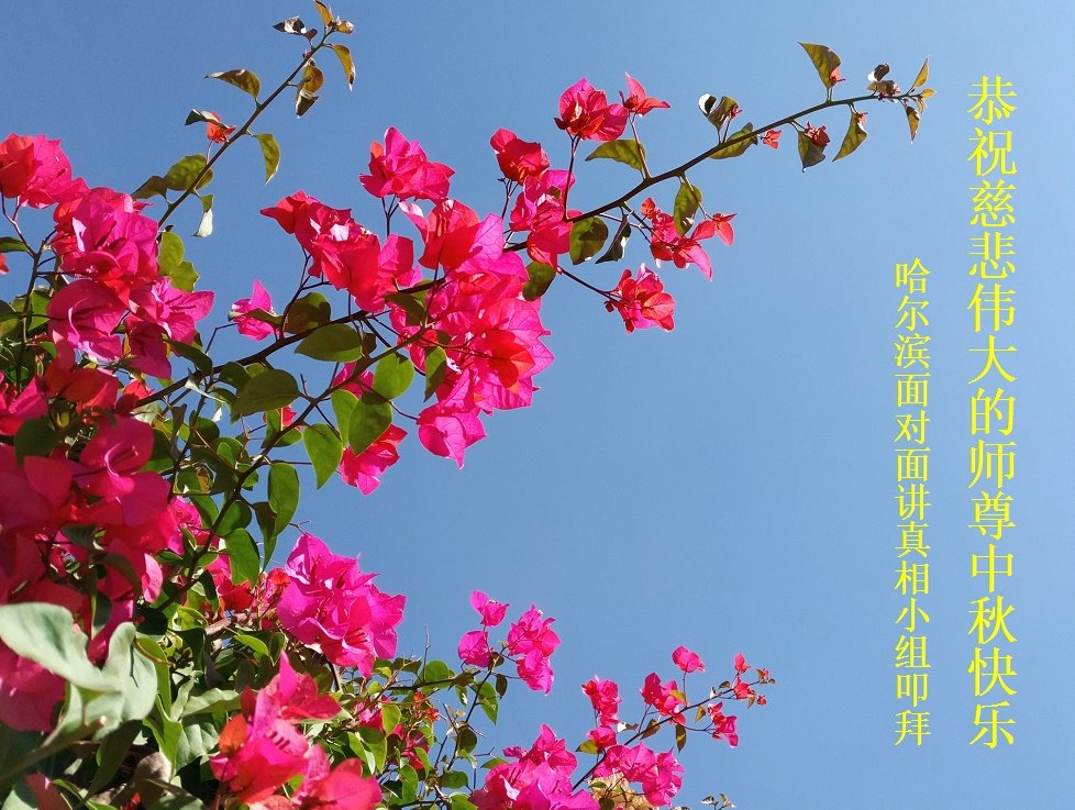 黑龙江省哈尔滨面对面讲真相小组大法弟子叩拜师父!恭祝师尊中秋快乐!