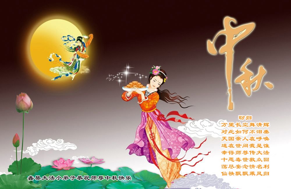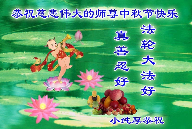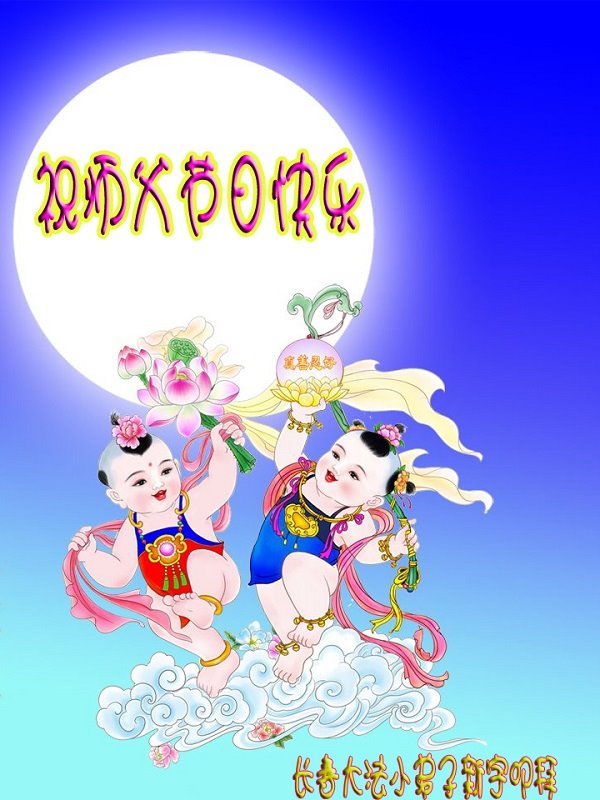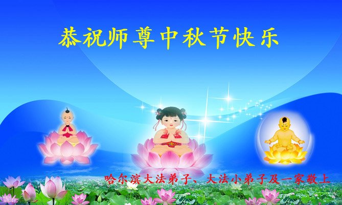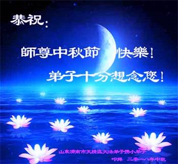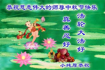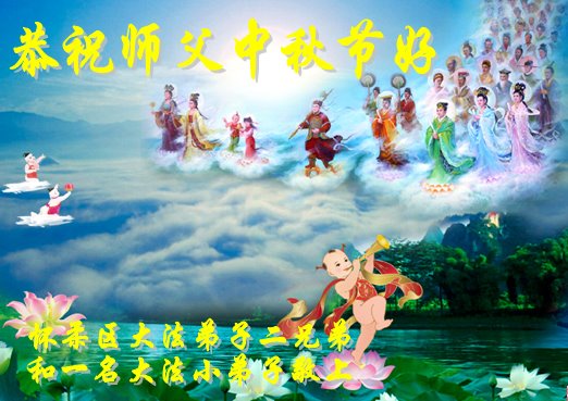 昔日小弟子叩拜慈悲伟大的师父,感谢师父的再造之恩!师父啊,我已经回归大法了,我要跟您回家!祝慈悲伟大的师父中秋快乐! 一青年大法弟子 黑龙江省佳木斯一大法小弟子祝师父中秋节快乐!