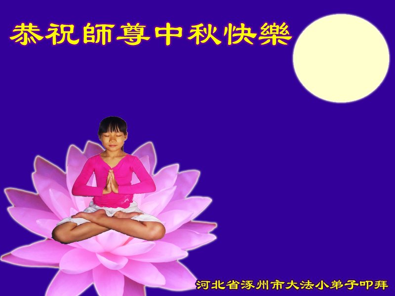 我一定要好好学法、炼功,长大跟师父回家!祝师父中秋节快乐! 佳木斯市大法小弟子敬上 |