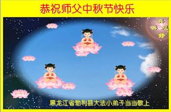 黑龙江省勃利县大法小弟子问候师父:恭祝师父中秋节快乐! 黑龙江省勃利县大法小弟子敬上 黑龙江哈尔滨大法弟子一家恭祝师尊中秋节快乐!