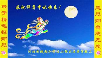又快到中秋节了,在此弟子向慈悲的师父问声:您好,师父您辛苦了!弟子真心祝愿师父中秋快乐!谢谢师父的救度之恩! 河北省张家口一学法小组恭祝师尊中秋快乐!