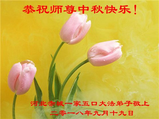我们一家五口大法弟子感谢师尊救度之恩!弟子们一定要共同精進,做好三件事,不辜负师尊慈悲苦度! 合十! 河北赤城大法弟子 二零一八年九月十九日 河北省张家口市赤城县一学法小组大法弟子恭祝师尊中秋快乐!