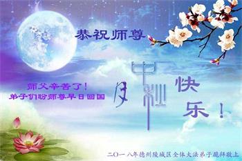 【明慧网二零一八年九月二十二日】 山东德州陵城区全体大法弟子恭祝师尊中秋快乐!