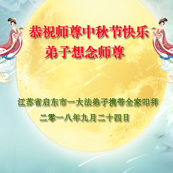 【明慧网二零一八年九月二十二日】 江苏省南京江宁大法弟子恭祝师父中秋节快乐!感谢师父救度之恩!