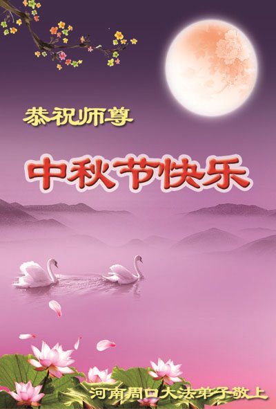 弟子明白师尊时时刻刻都在看护着弟子。用尽人类的语言也无法言表师尊的洪恩,弟子只有严格用大法要求自己,修好自己,做好三件事,让师尊少一些操劳多一份宽慰。祝师尊中秋快乐!跪拜师尊! 河南一大法弟子恭祝伟大的师尊中秋节快乐!