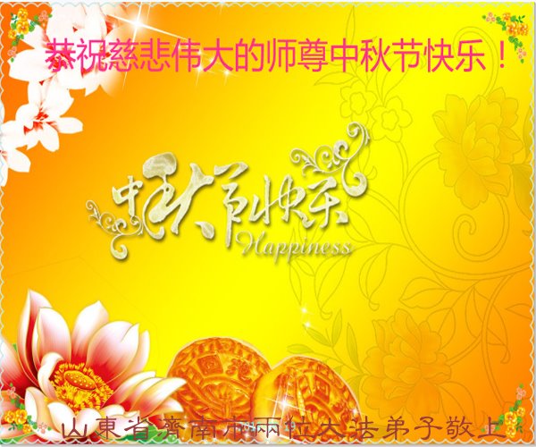 山东省济南市两位大法弟子恭祝慈悲伟大的师尊中秋节快乐!