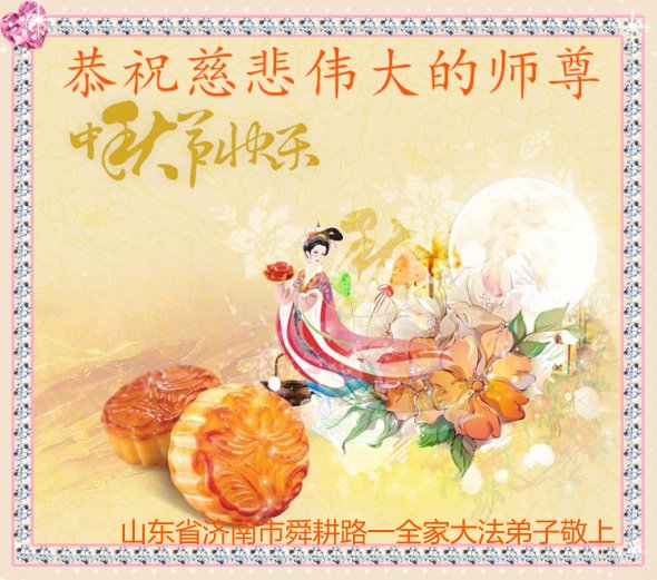 恭祝慈悲伟大的师尊中秋节快乐! 山东省济南市舜耕路大法弟子全家恭祝师尊中秋节快乐!