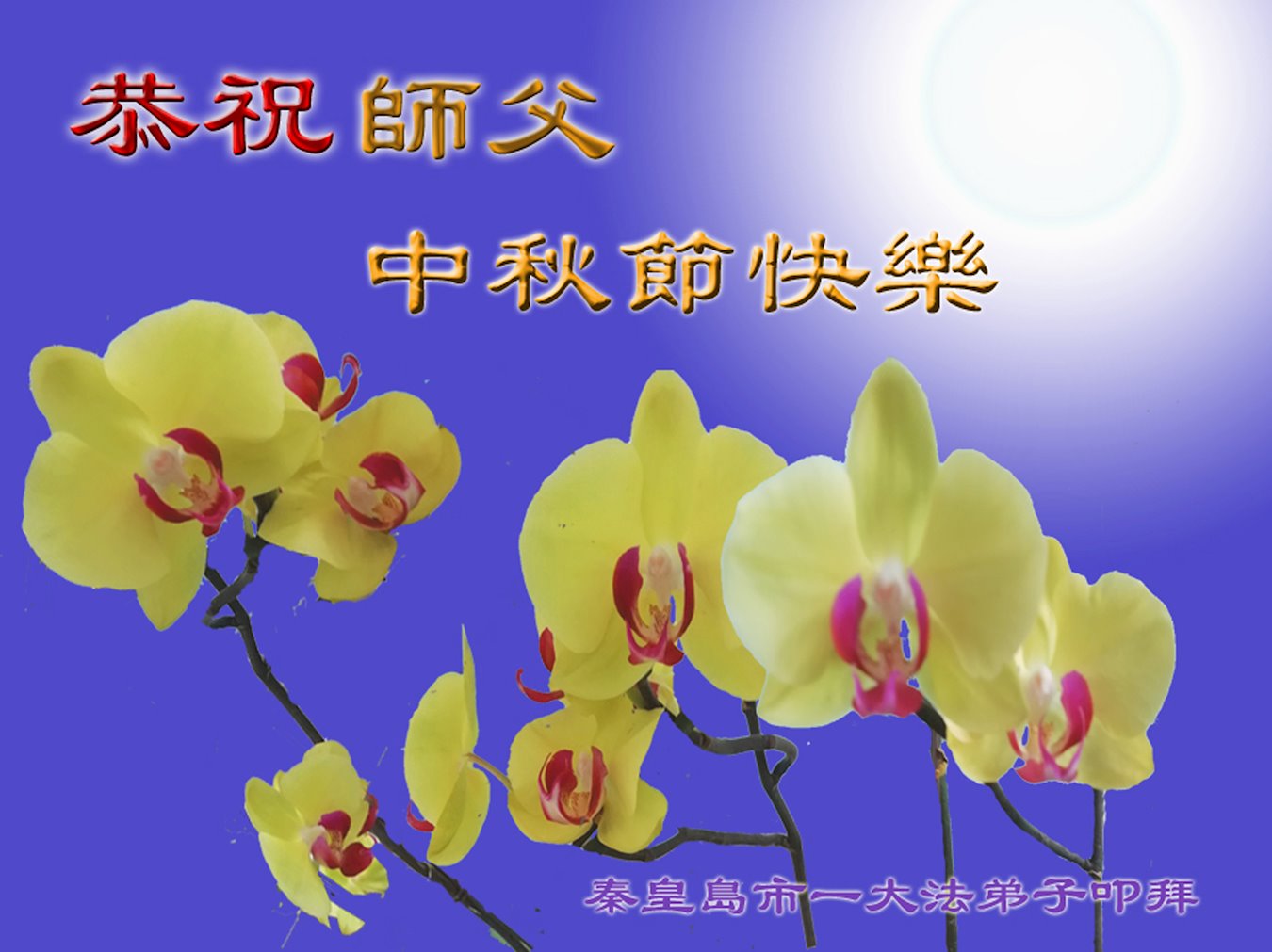 师尊您辛苦了!多谢师尊慈悲救度! 河北省秦皇岛一大法弟子恭祝师父中秋节快乐!