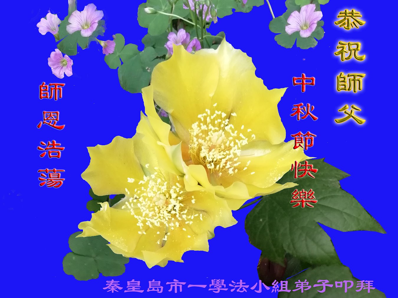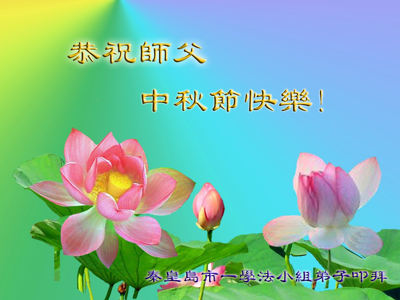 河北秦皇岛市一家三代大法弟子恭祝师尊中秋快乐! 河北省秦皇岛一学法小组大法弟子恭祝慈悲伟大的师尊中秋节快乐!