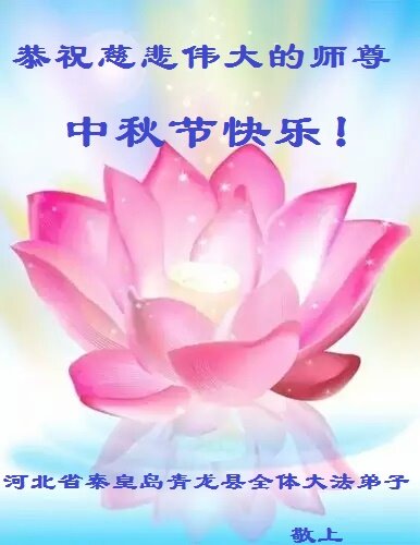 二人学法小组问师尊好:师尊您辛苦了!谢谢师尊慈悲救度弟子和众生。 秦皇岛市大法弟子 河北省秦皇岛昌黎县大法弟子恭祝师尊中秋节快乐!