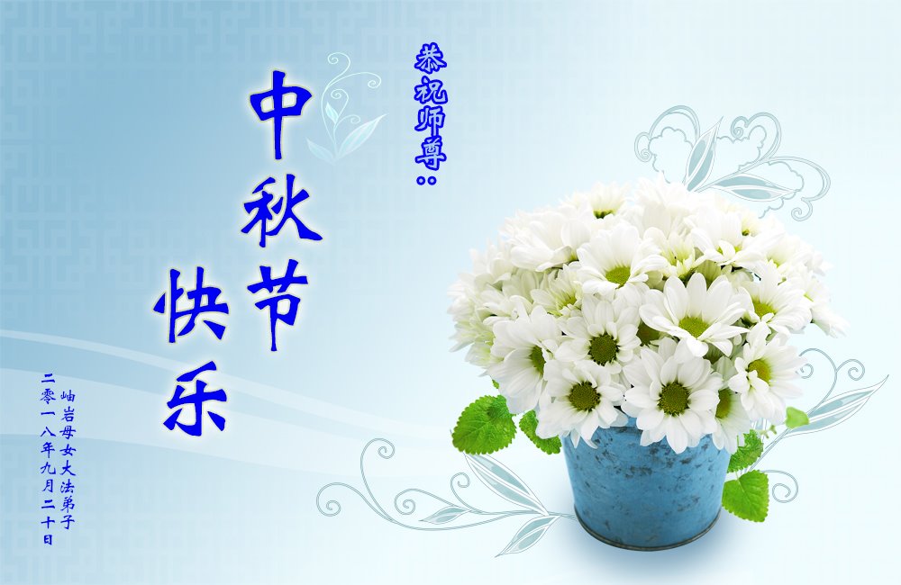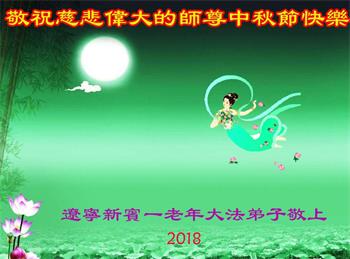 慈悲伟大的师父您好!您辛苦了!祝师尊中秋节快乐! 弟子唯有努力精進,做好三件事回报师父的洪恩! 弟子叩拜师尊 2018年9月19日 辽宁新宾大法弟子一学法小组全体学员敬祝慈悲伟大的师尊中秋节快乐!