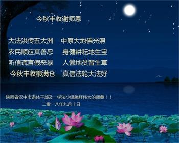 陕西省安康市全体大法弟子恭祝师父中秋节快乐!