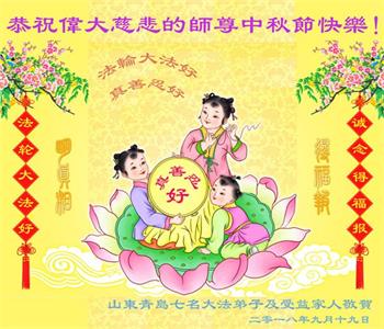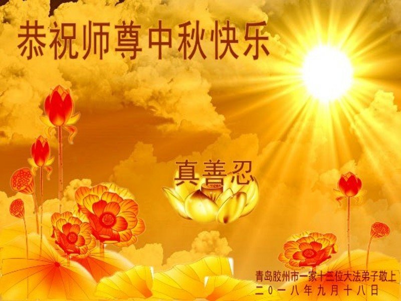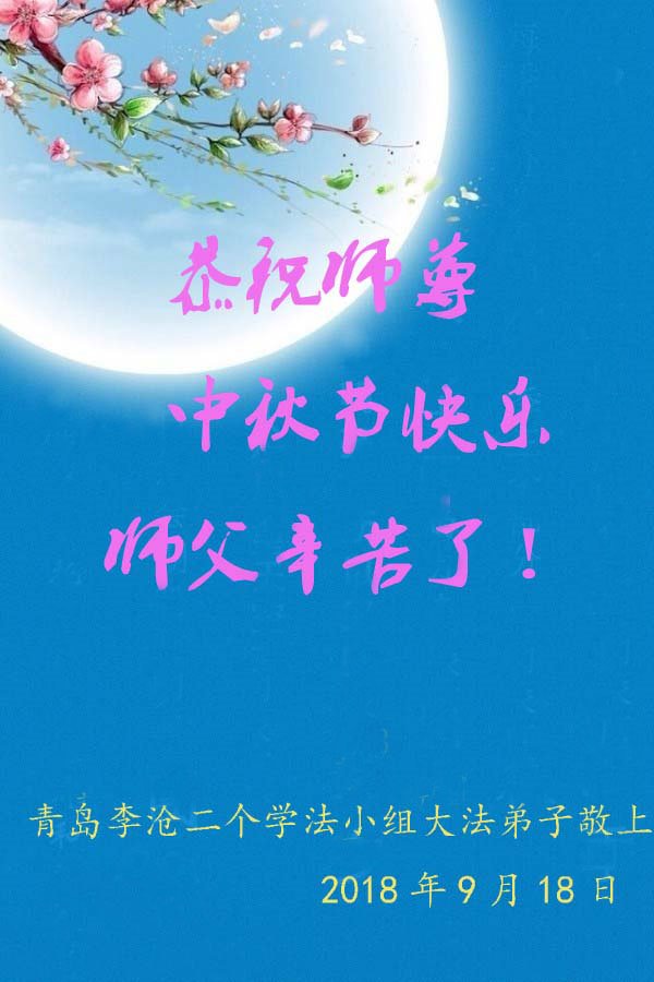 山东省青岛大法弟子及姐姐同修和支持我修炼的丈夫恭祝师尊中秋节快乐!