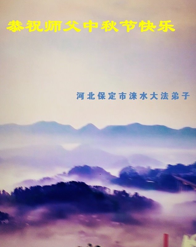 在师尊正法的最后时刻,我们一定精進起来努力做好三件事,完成我们的历史使命跟师父回家。愿师尊多一份欣慰,真正的恭祝师尊中秋快乐!我们共同向师尊合十! 恭祝慈悲伟大的师尊中秋快乐! 河北省保定市阜平县老俩口大法弟子恭祝慈悲伟大的师尊中秋节快乐!