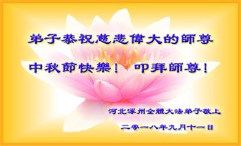 【明慧网二零一八年九月二十二日】 河北省保定市高碑店市全体大法弟子恭祝慈悲伟大的师尊中秋快乐!