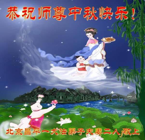 北京市昌平区一大法弟子代全家恭祝师父中秋节快乐!