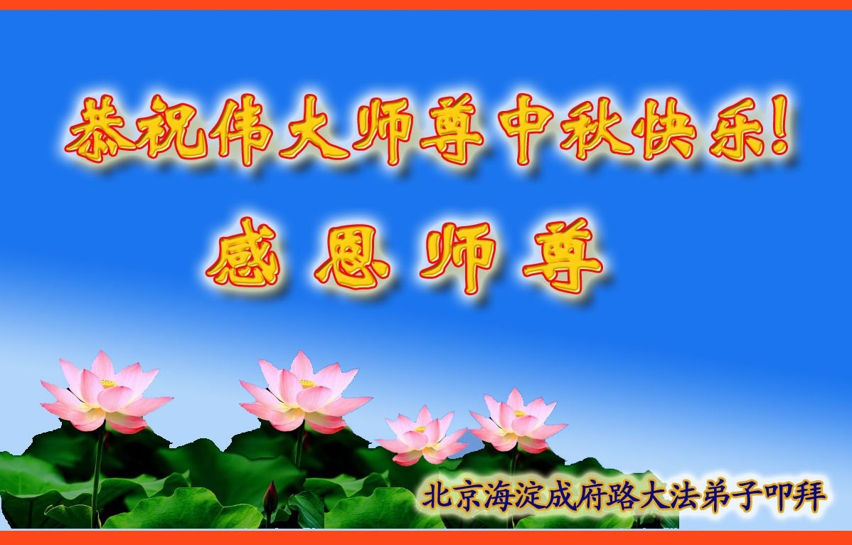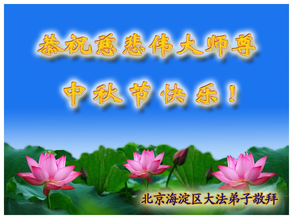 师父您好!师父您辛苦了!师父谢谢您!弟子们都非常想念师尊。我们要听师父的话,学好法,走好修炼的路,跟师父回家。 北京海淀区大法弟子恭祝伟大的师尊中秋节快乐!