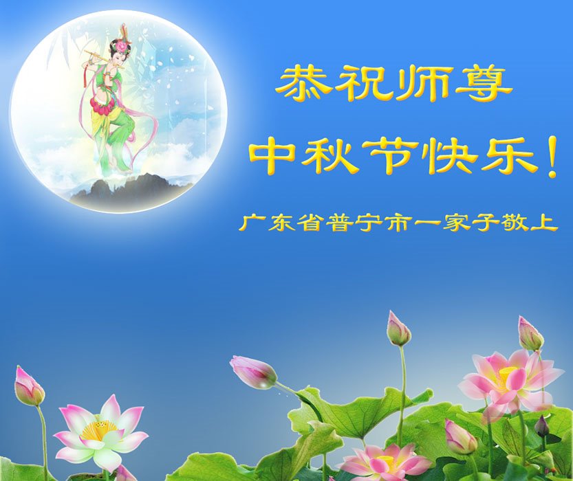 广东省汕头市大法弟子一家恭祝师父中秋节快乐!