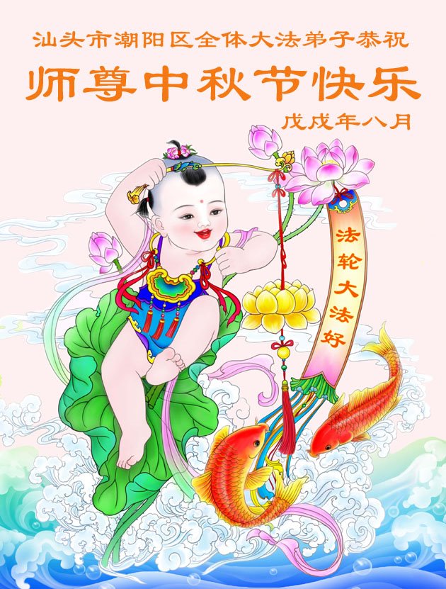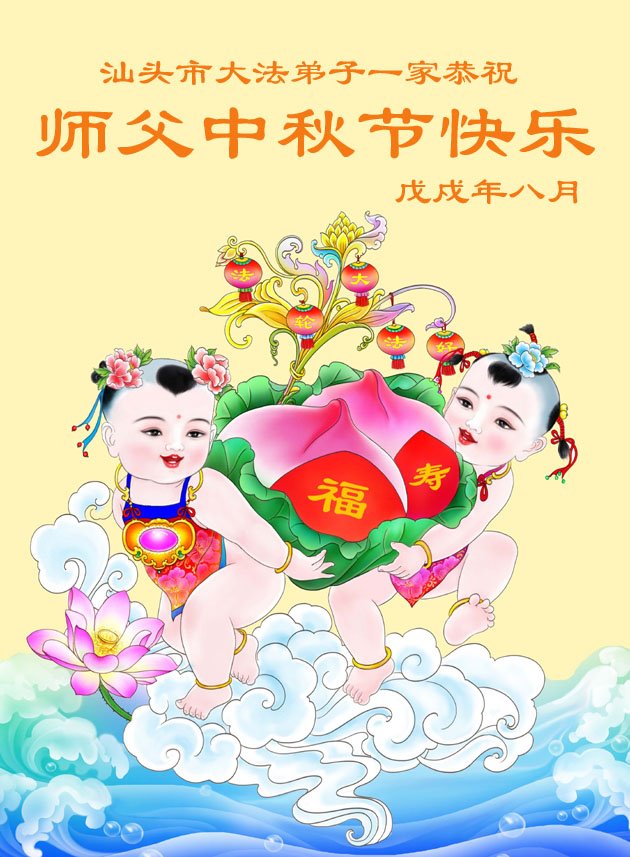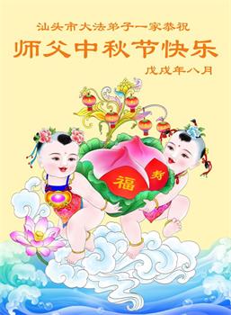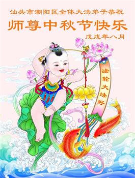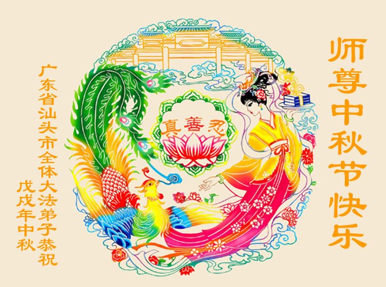【明慧网二零一八年九月二十二日】 广东省汕头市大法弟子恭祝慈悲伟大的师父中秋节快乐!