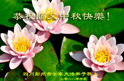 【明慧网二零一八年九月二十二日】 四川省成都市彭州市一学法小组恭祝师父中秋快乐!
