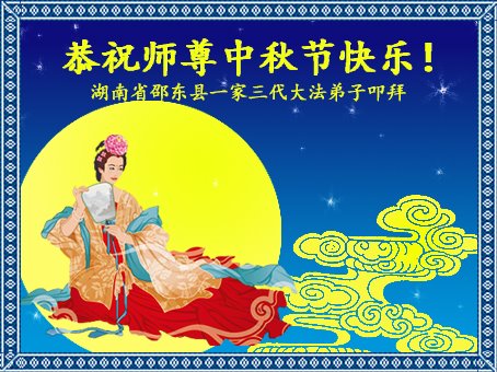 我们会更加努力做好三件事,跟师尊回家。 谢谢师尊慈悲苦度!师尊您辛苦了! 湖南省永州市蓝山县大法弟子恭祝师尊中秋节快乐!