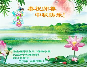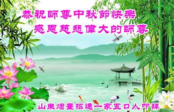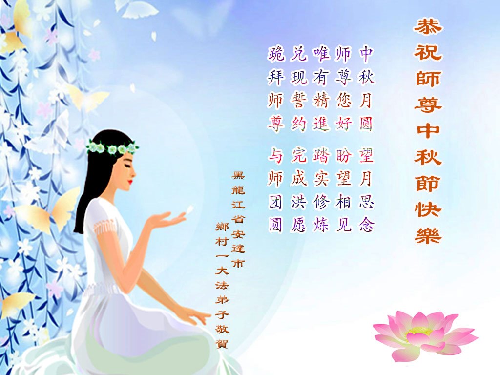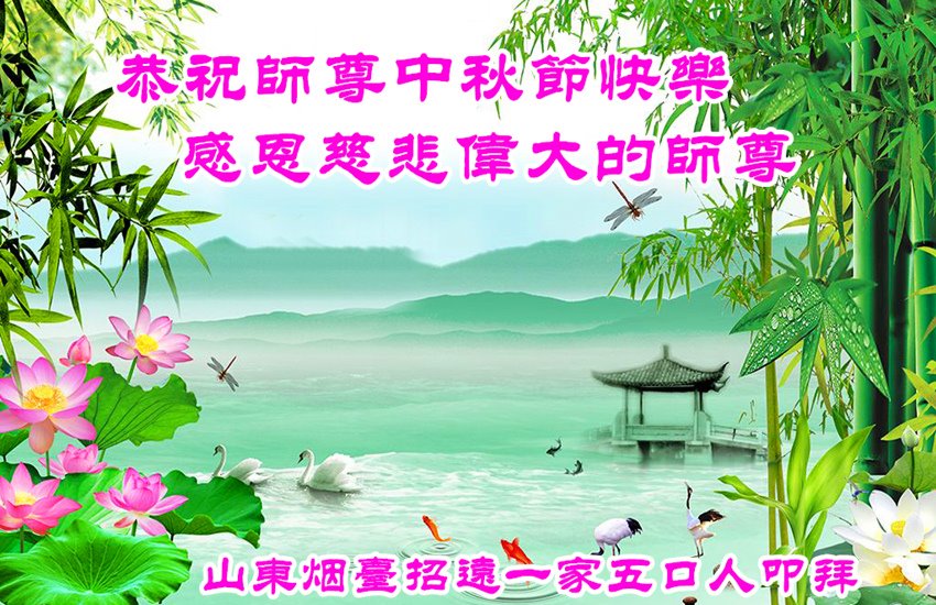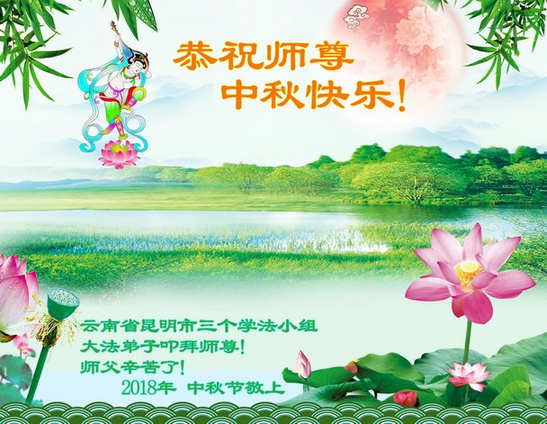 | 【明慧网二零一八年九月二十二日】又是一年的中秋佳节,在万家团圆的日子,中国大陆大法弟子以贺信遥寄对师父的思念,感恩师尊的谆谆教诲和慈悲救度,表示继续精進实修。 甘肃天水大法弟子在贺信中说:“万幸我们得到了亘古未有的大法,得到了慈悲伟大的师尊的救度。世间乱象再也难以牵动我们的心。我们如浊世清莲,在道德一日千里下滑的当今社会,我们逆流而上。” 江苏徐州大法弟子恭祝师尊中秋快乐!他们说:“我们学法小组跟随师尊正法十九年,得到了师尊的无比关怀。在这中秋佳节,我们全组弟子衷心的感恩师尊,谢谢您的慈悲保护!” 河北一个村庄学法小组在信中写道:“我们是河北农村一个偏僻的小村庄学法小组,每个同修都非常非常想念师父啊!我们坚信师父,坚信大法,大法无边,师父的恩德无边!” 山东烟台招远市一家人表示:我们虽然从未见过师尊的面,但我们深知师尊就在我们身边,时时看护着我们。师尊的慈悲伟大,大法无所不能的巨大法力,锤炼着我们,成就着我们,使我们在神的路上一步一步的向上攀登,最终返回到我们自己真正的家园。 四川南充顺庆区顺河乡农村一老年大法弟子叩拜师尊,说:“师尊让我从一个病秧子变成一个能干田里体力活的健康人。不辜负师尊的慈悲普度,在同修的配合下,我也会撑起那一片众生得救的希望。” 黑龙江省绥化市安达市乡村一大法弟子恭祝师尊中秋节快乐!中秋月圆 望月思念 师尊您好 盼望相见 唯有精進 踏实修炼 兑现誓约 完成洪愿 跪拜师尊 与师团圆 浙江杭州俩大法弟子恭祝师尊中秋好!每到团圆的日子,弟子倍加思念师尊,期待早日与师尊团聚。唯有信师信法,正念正行,多学法,学好法,在最后不多的助师正法机缘中,找回修炼如初的状态,做好三件事,才能问心无愧,才能不留遗憾,才能不辜负师尊的慈悲苦度。 黑龙江省齐齐哈尔市富裕县二道湾镇一家大法弟子:学好法,向内找,多救人尊敬的师父您好!我们全家恭祝师尊中秋节快乐! 我们全家人非常想念师父,盼望师父早日回大陆与我们团聚。我们全家得法修炼已有二十多个春秋,千言万语道不尽师尊对弟子慈悲保护,只有精進实修,多学法、学好法,向内找,修好自己,多救人,努力做好三件事,配合好整体,圆容师尊所要的,圆满随师还! 齐齐哈尔市富裕县二道湾镇一家大法弟子叩拜师尊! 甘肃天水大法弟子:助师正法,兑现使命,跟您回家甘肃天水大法弟子恭祝慈悲伟大的师尊中秋节快乐! 师父:中秋快乐! 人生的苦涩,生活的艰辛,常常使我们陷入苦难的泥潭。万幸我们得到了亘古未有的大法,得到了慈悲伟大的师尊的救度,我们的脚下峰回路转。 师父,是您拽着我们的手一步一步走到今天,世间乱象再也难以牵动我们的心。我们如浊世清莲,出污泥而不染;在道德下滑一日千里的当今社会,我们逆流而上。 师父:弟子心中有一盏明灯,那就是助师正法,兑现使命,跟您回家! 在这万家团圆的中秋佳节之际,弟子期盼和师父团聚。 遥拜师尊 叩首! 河北石家庄市全体大法弟子:抓紧时间多学法 多救人河北石家庄市全体大法弟子恭祝师尊中秋快乐! 师尊好!师尊辛苦了!弟子叩拜师尊救度洪恩!弟子恭祝慈悲伟大的师尊中秋佳节快乐!在这民族的团圆佳节之际,弟子们更加思念您──慈悲伟大的师尊。 十九年的岁月,十九年的思念。感恩您慈悲洪传宇宙大法!感恩您慈悲救度宇宙苍生!大法弟子──宇宙大法造就的大法徒,同化宇宙大法的全新的生命,新宇宙中生命的代表,决不辜负您的期望,一定抓紧时间多学法,学好法。多讲真相,多救人。 石家庄市全体大法弟子叩拜慈悲伟大的师尊,敬祝慈悲伟大的师尊中秋佳节快乐! 石家庄市全体大法弟子 北京海淀区一大法弟子:无论面临怎样的磨难 修炼的心坚如磐石北京海淀区一大法弟子恭祝慈悲伟大的师尊中秋快乐! 大法洪传,世人心渐明,邪恶终有灭尽时,普天同庆的日子终会到来,我作为一名得法多年的老弟子,深深的沐浴在大法的洪恩中,身心得到净化,家人受益匪浅,我在此向伟大的师尊恭祝中秋佳节节日快乐!弟子无论面临怎样的磨难,弟子修炼的心都坚如磐石,永远不会改变,终有一日,弟子会回到自己真正的家园,不负师恩。 北京海淀区一大法弟子敬上 黑龙江省佳木斯市祖孙俩大法弟子:感恩师父呵护 化险为夷黑龙江省佳木斯市祖孙俩大法弟子恭祝师尊中秋快乐! 慈悲伟大的师尊您好:您辛苦了! 我们身在中国大陆大法弟子想念您呀!我们诚心对师父的坚信,每次邪恶的迫害,在师父的保护下都化险为夷,感恩师父慈悲苦度!请师父放心,我们一定珍惜最后救人的保贵时间,共同精進!解体迫害大法残佘的邪恶,解救众生。迎接师父与众弟子团聚的那一天! 谢谢师父,恭祝师尊中秋快乐! 黑龙江省佳木斯市大法弟子敬上 辽宁抚顺一母女俩大法弟子: 修炼中不懈怠,走好以后的路辽宁抚顺一母女俩大法弟子恭祝师尊中秋快乐! 师父您好! 在中秋佳节来临之时,让我们母女俩大法弟子给您带去诚挚的问候,恭祝您中秋节快乐! 在正法修炼的最后时刻,我们深知这时间是师尊用巨大的承受延续来的,弟子唯有精進实修才不会辜负师尊的慈悲苦度。母亲同修已是近90高龄了,老人家更是知道时间的宝贵,修炼中不敢懈怠,努力做好能做的。相信我们母女俩在师父慈悲的救度中会走好以后的路,兑现我们各自的史前大愿,随师父早日回家! 恭