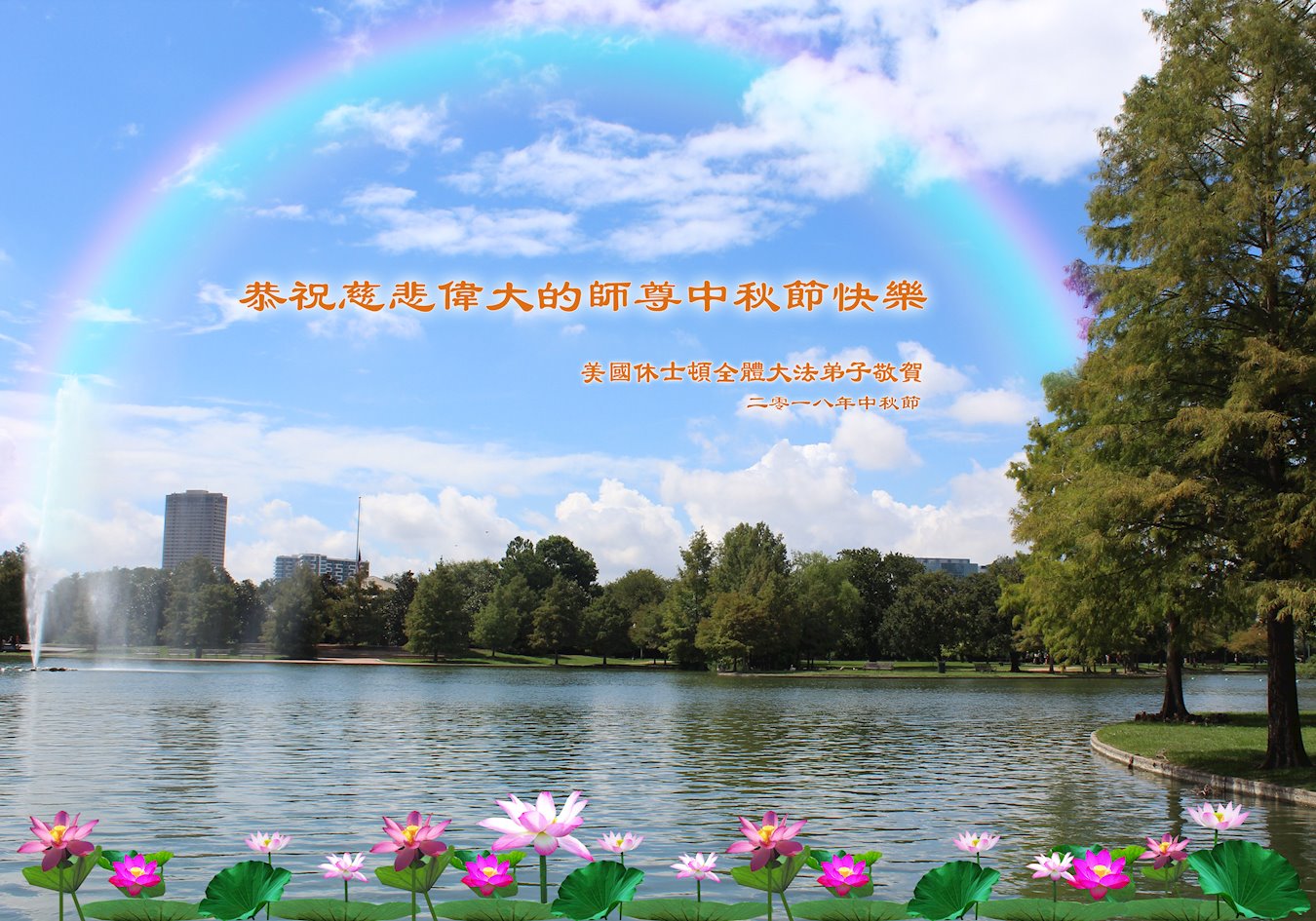 美国休士顿全体大法弟子恭祝慈悲伟大的师尊中秋节快乐!