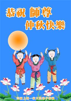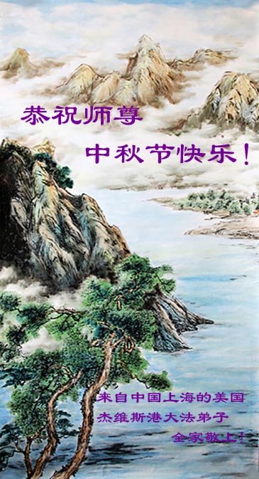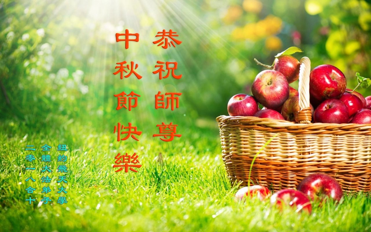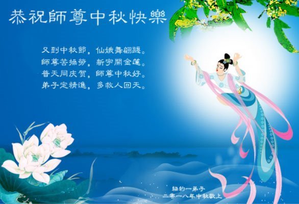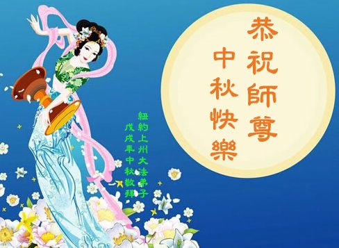 随师正法下莲台 得法实修出慈怀 救度众生洪愿了 践约不负九霄来 纽约一大法弟子恭祝师尊中秋节快乐!