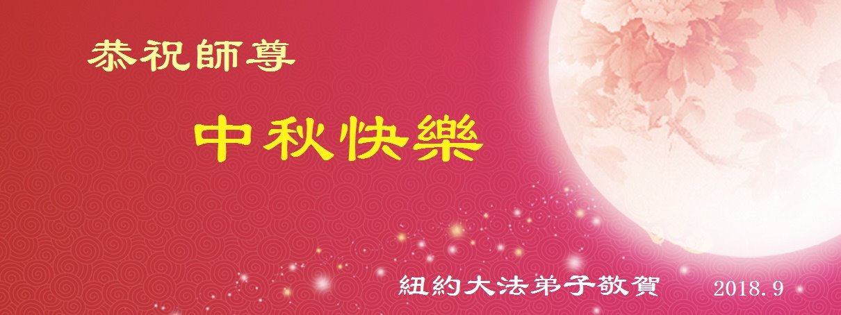 弟子一定非常珍惜慈悲伟大的师尊恩赐我们的助师正法、救度众生的万古难遇的正法修炼的机缘。做好三件事,不辜负师尊的慈悲救度! 合十 叩拜 纽约大法弟子 2018年9月19日 纽约飞天大学全体大法弟子恭祝师尊中秋快乐!