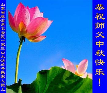 山东省威海市文登区一家三口大法弟子携家人恭祝慈悲伟大的师父中秋快乐!