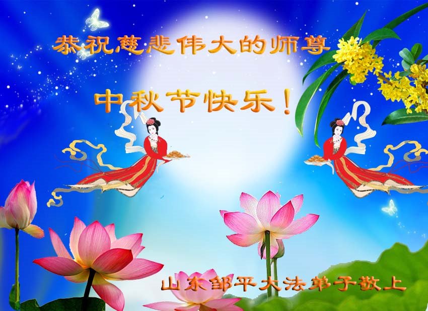 山东邹平大法弟子恭祝慈悲伟大的师尊中秋节快乐!