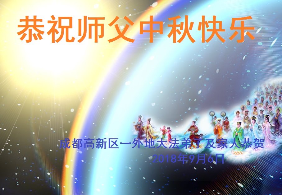【明慧网二零一八年九月二十三日】 四川省成都市大法弟子一家恭祝师尊中秋节快乐!