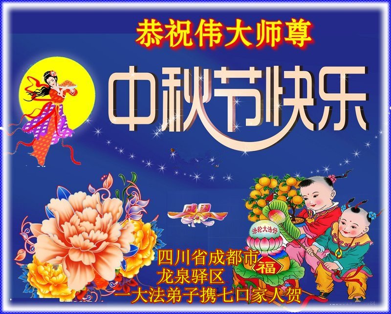 四川成都一大法弟子暨全家恭祝师尊中秋快乐!