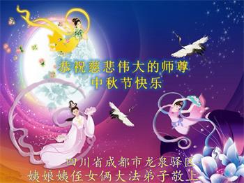 成都市龙泉区一大法弟子恭祝师父中秋快乐! 四川成都高新区一外地大法弟子及家人恭祝师父中秋快乐!