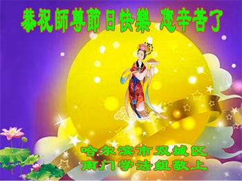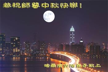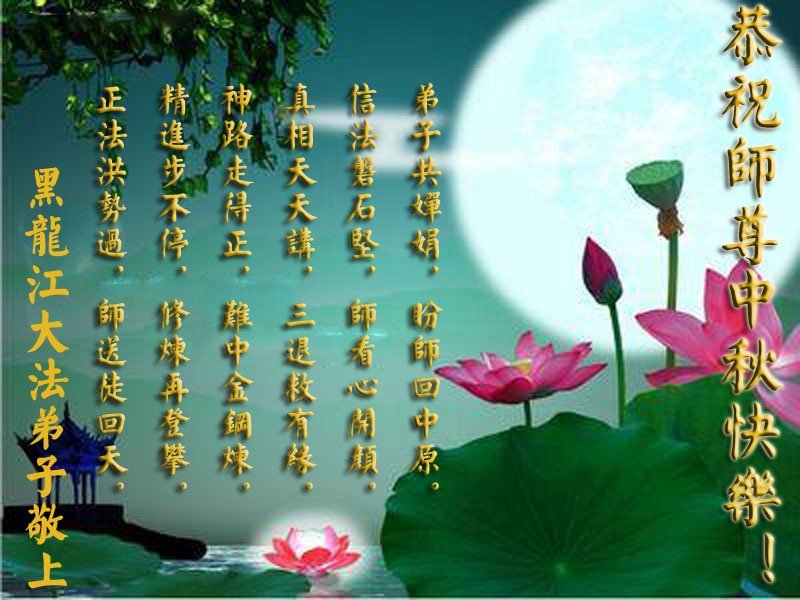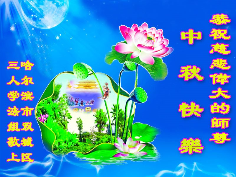 感谢师父的慈悲救度与保护!发自内心的感激!我一定会谨遵师尊的教诲,做好三件事,救度更多的众生! 黑龙江省哈尔滨市依兰县一学法小组大法弟子恭祝师尊中秋节快乐!