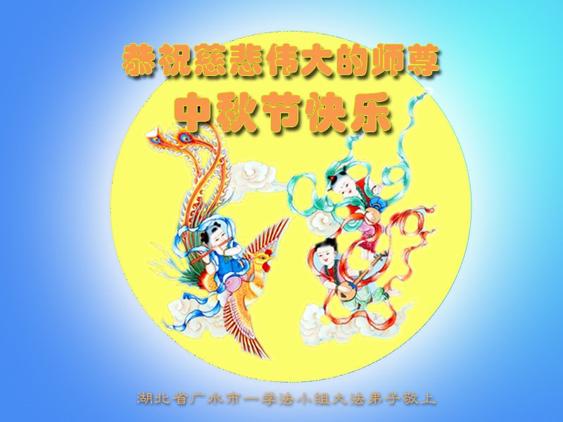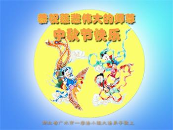 我们一定听师尊的话,学好大法,修好自己,助师正法,救度更多的众生,让师尊少一些操劳,多一些欣慰! 叩谢师恩! 湖北省黄冈市浠水县大法弟子恭祝师尊中秋节快乐!
