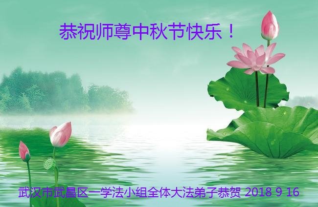 【明慧网二零一八年九月二十三日】 湖北省武汉市新洲区阳逻街俩大法弟子恭祝慈悲伟大的师尊中秋节快乐!