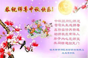 【明慧网二零一八年九月二十三日】 黑龙江佳木斯市郊区农村学法组大法弟子恭祝师尊中秋快乐!
