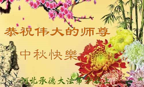 师尊您好,在中秋佳节来临之际,恭祝慈悲伟大的师尊中秋节快乐! 弟子一定向内看,找自己,努力做好三件事,圆满随师还。 河北省教育系统大法弟子恭祝师尊中秋节快乐!