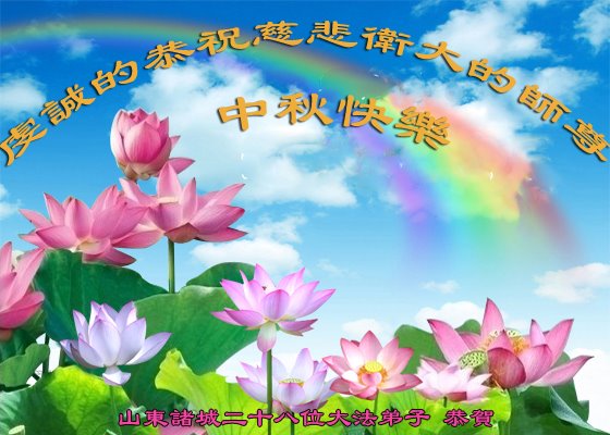 师尊辛苦了!弟子跪拜师尊,感谢师尊的慈悲苦度。 弟子一定精進再精進,助师正法,做好三件事,让师尊少一份操劳,多一份欣慰。 恭祝慈悲伟大的师尊中秋节快乐! 山东省潍坊市临朐县十九位大法弟子恭祝慈悲伟大的师尊中秋节快乐!